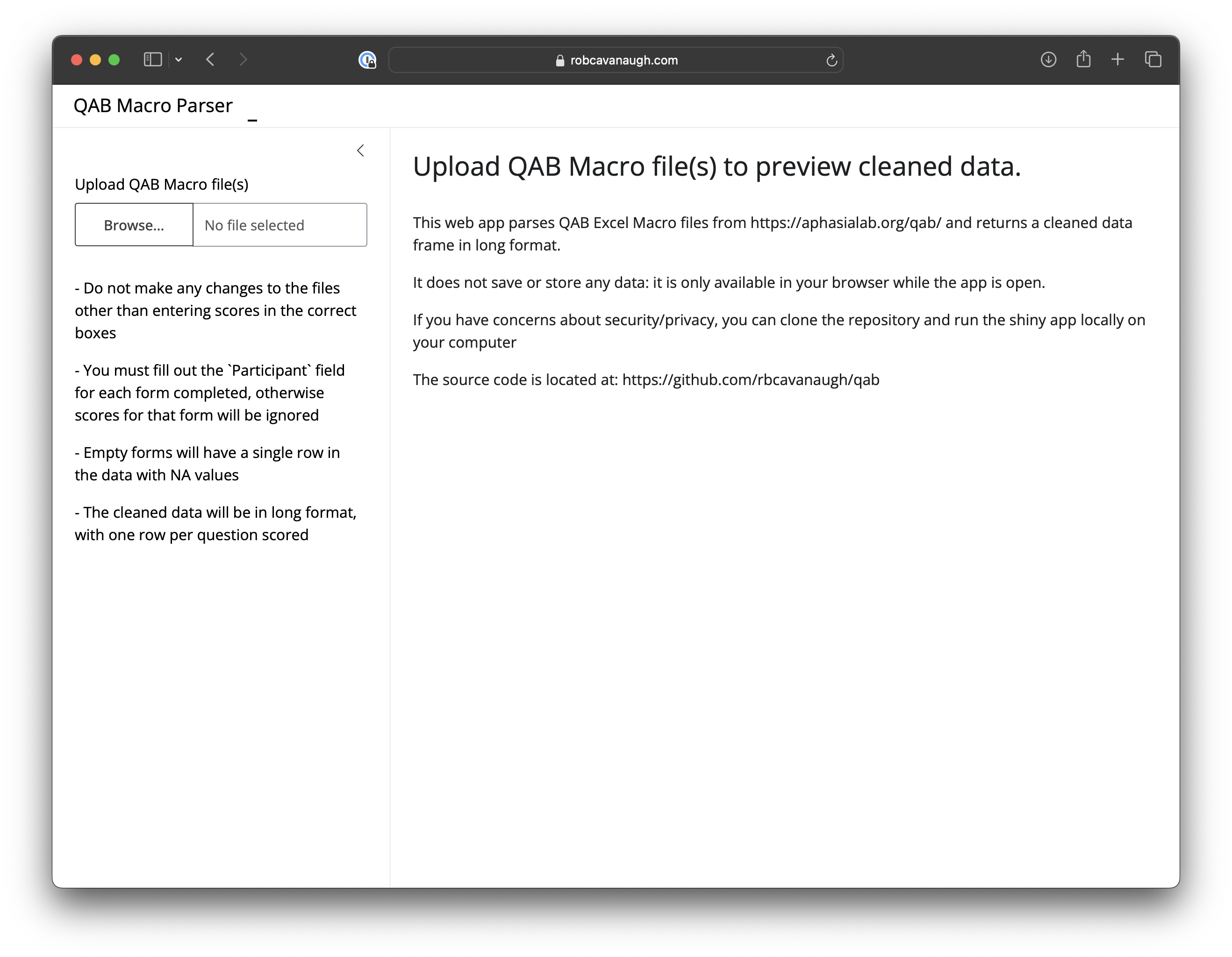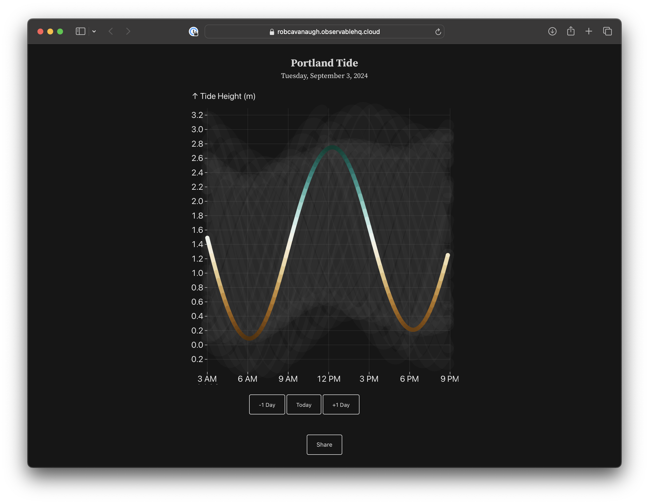 I’ve also been dabbling recently in Observable Framework for creating interactive data visualizations. A simple side project includes the Portland Tide website which has an interactive figure of the Tides in Portland ME, so that my wife and I know when we should take our dogs to the beach. Observable is really flexible since it allows the data to be processed in R, but the website to be generated in javascript - meaning there is no need for a backend server (and associated costs!). R Shiny also has some recent upgrades, including shinylive, which allows shiny apps to be run in a browser. The QAB Macro Parser is an example of this - a static webpage running R that allows users to upload one or more QAB Scoring Macro Excel files and download a combined and tidy dataset for further analysis.